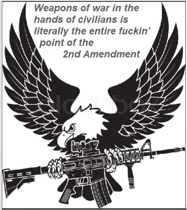 Weapons of war in the hands of civilians is literally the entire fuckkin’ point of the 2nd...